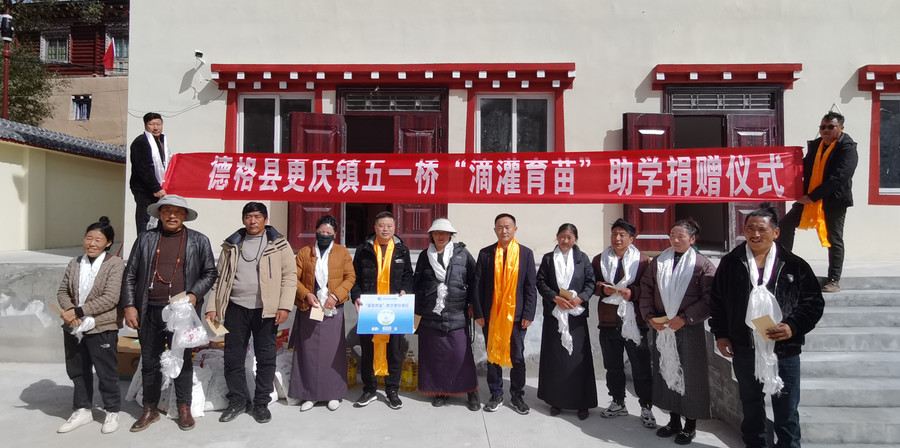 德格縣更慶鎮(zhèn)五一橋村“滴灌育苗”助學(xué)捐贈(zèng)儀式