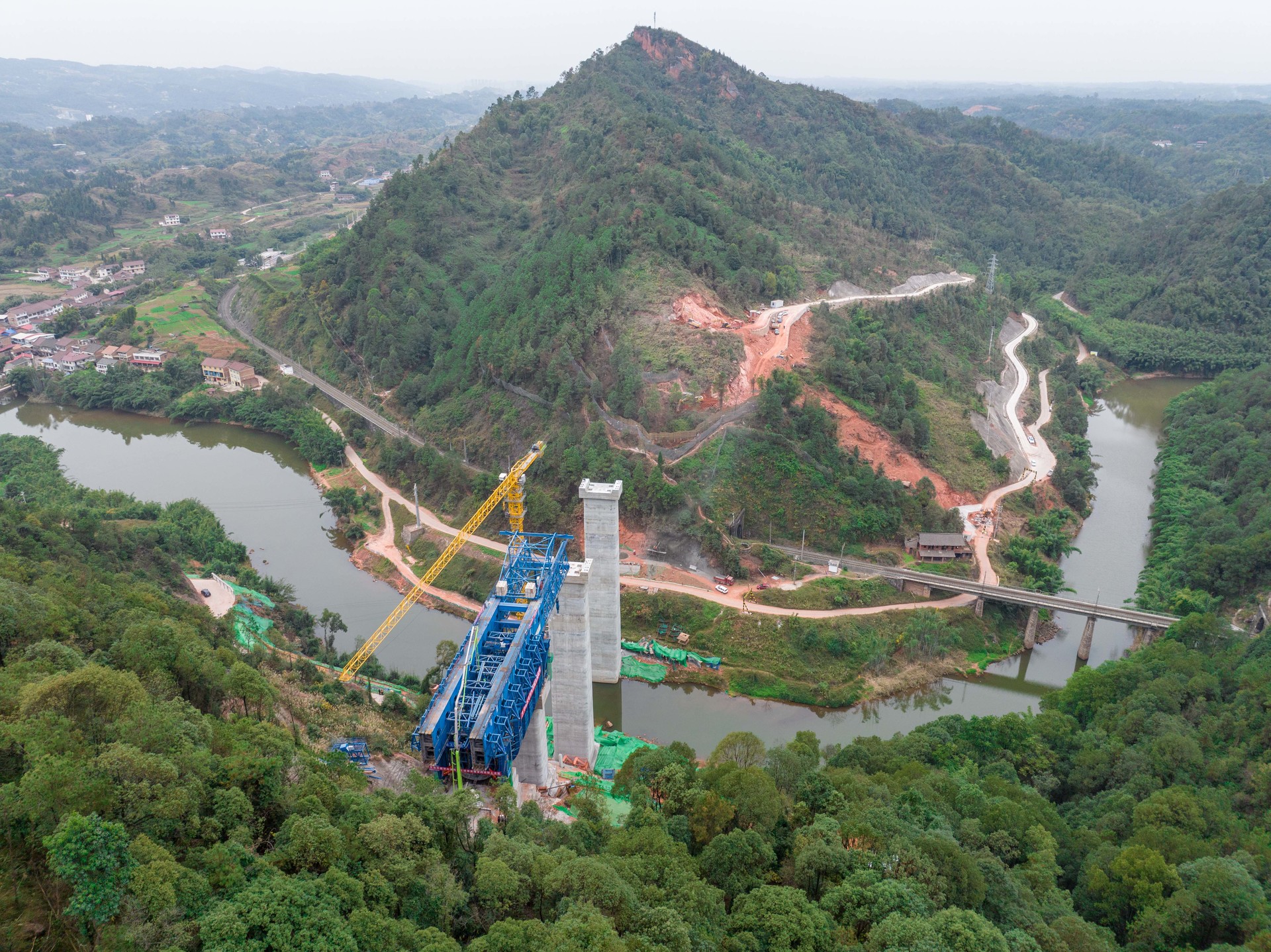 施工中的老吳壩渡槽